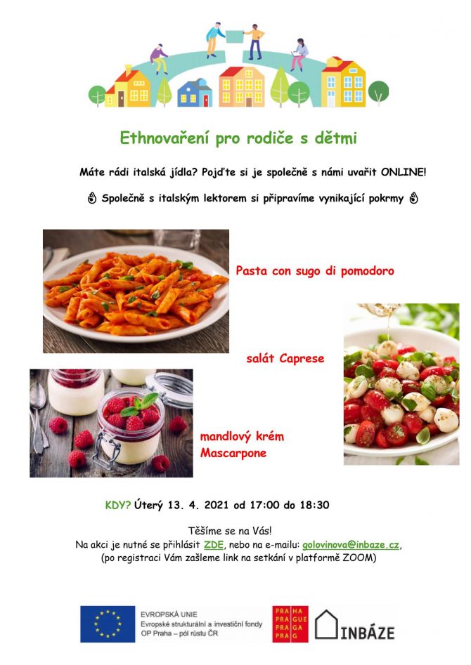 Máte rádi italská jídla? Nevládní nezisková organizace InBáze, z.s. si pro vás připravila on-line kurz vaření, kde se naučíte připravit vybrané italské dobroty. K přihlášení využijte tento formulář nebo napište na mail: golovinova@inbaze.cz.