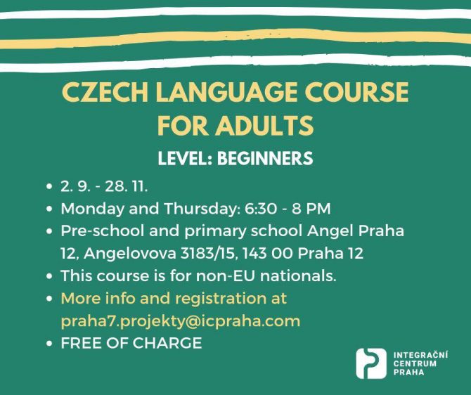 Chcete se naučit česky? Nyní máte příležitost! Přihlaste se na podzimní kurz českého jazyka pro začátečníky, které pořádá městská část Praha 12. Kurz je určen pro občany třetích zemí (mimo Evropskou unii) a je zcela zdarma. Výuka bude probíhat od 2. září do 28. listopadu v základní a mateřské škole Angel v Praze. Konkrétně můžete kurz navštěvovat dvakrát týdně – v pondělí a ve čtvrtek od 18:30 do 20 hodin.
