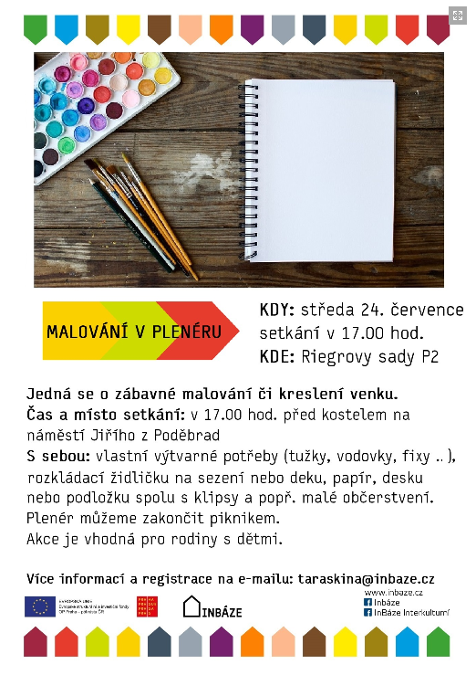 Do you like painting? Then do not miss Plein Air Painting, an event of InBaze which takes place on the last Saturday in July. You can look forward to fun painting or drawing outdoors and a picnic at the end. The participants will meet on 24th July at 5:00 p.m. in front of the church at Náměstí Jiřího z Poděbrad. The art creation will take place in Riegrovy sady. Don’t forget to take your art equipment with you, something to sit on and a snack. The event is suitable for families with children.