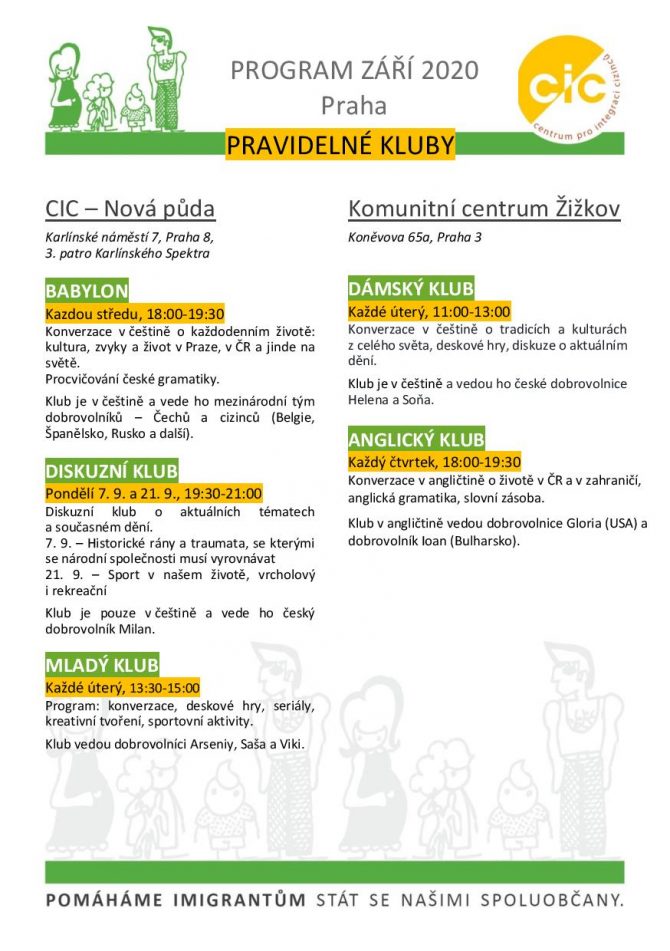 Every month, the Centre for the Integration of Foreigners (CIC) offers regular as well as special events. You can choose from four different clubs in Czech and English. In September, they are launching a new Czech conversation club – Babylon. If you want to improve your language skills or to share opinions with other foreigners and Czechs, feel free to join in. The clubs are open to anyone regardless of their level of Czech. The volunteer club presenters know how to get everyone involved. In September, CIC also holds a trip to Konopiště Chateau. For more information, see CIC’s website and Facebook.