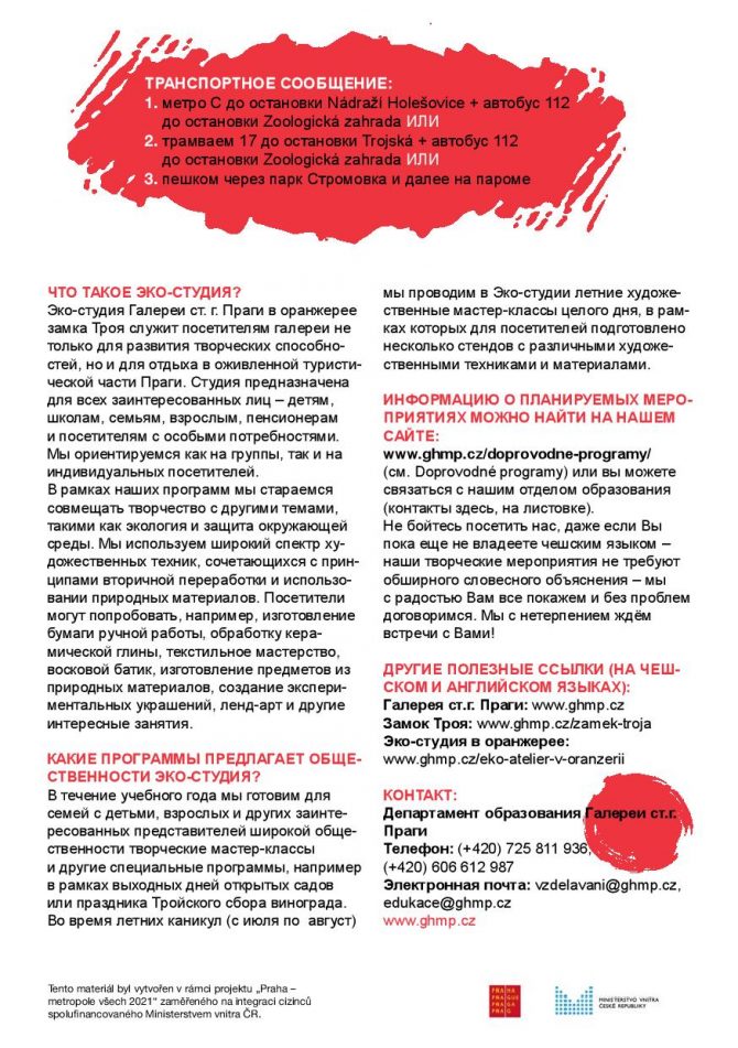 Галерея ст. г. Праги приглашает Вас на летние художественные мастер-классы