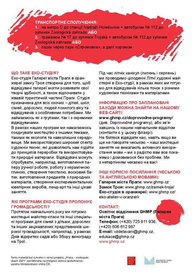 Галерея міста Праги з радістю запрошує на Літні мистецькі майстерні в Еко-студії